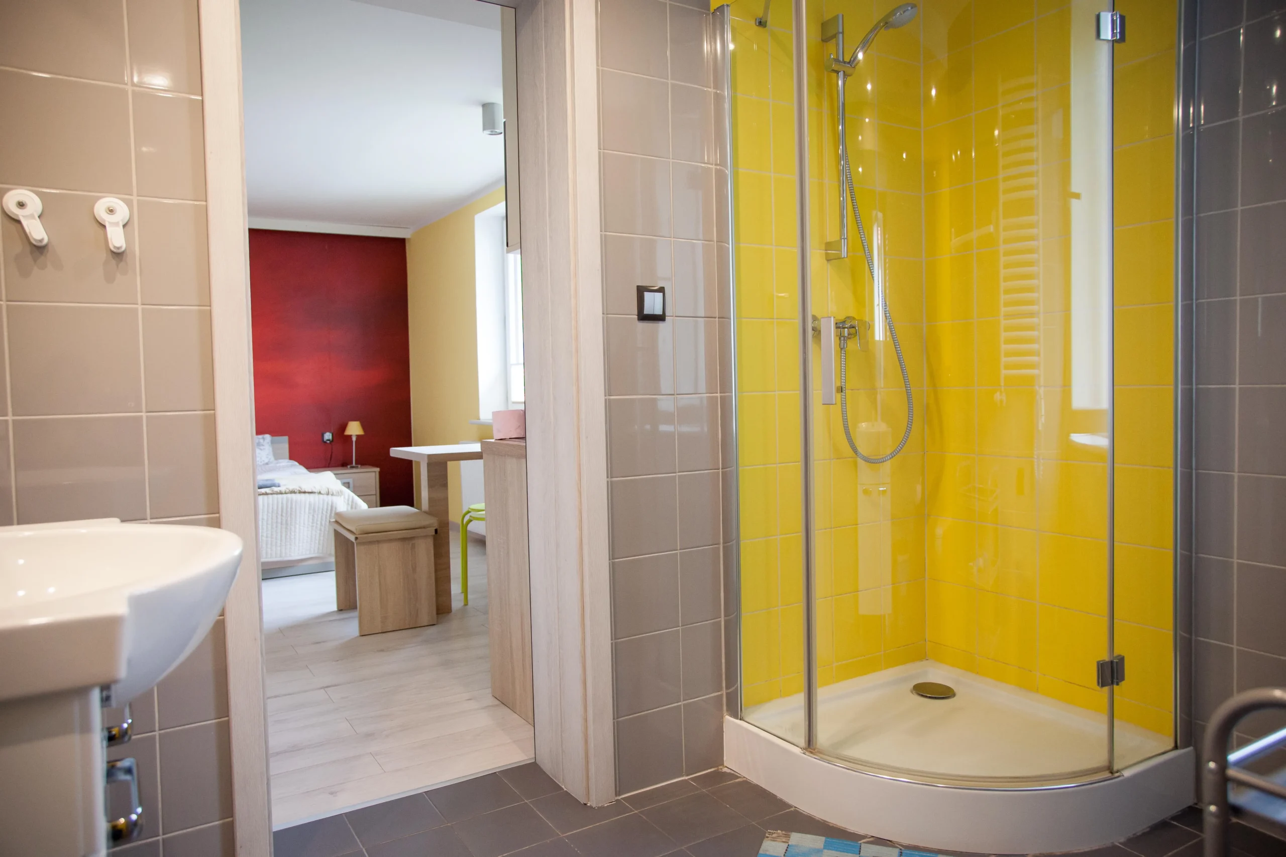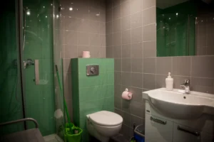 - Łazienka z prysznicem, umywalką, WC, suszarka, komplet ręczników, zestaw kosmetyków, mydła, wieszaki , przybory higieny osobistej itd.