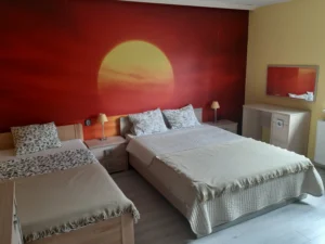 - leżaki, żelazko, środki czystości, pościel, ręczniki.